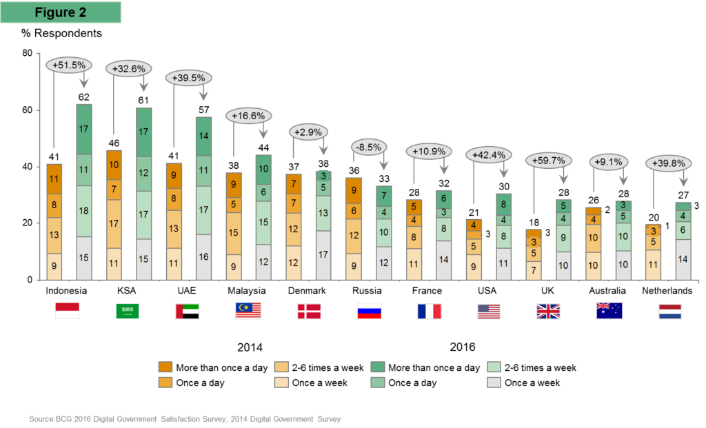“The proliferation of technology and digitalization of UAE citizens is evident, by the substantial increase of frequency of usage in digital government services when compared to 2014. The adoption of internet services has seen a particular high growth in wearable devices, which mirrors global trends. This points towards the need to advance and increase channels for citizens to access government service,” said Rami Mourtada, Principal and Digital Transformation Lead at BCG Middle East.