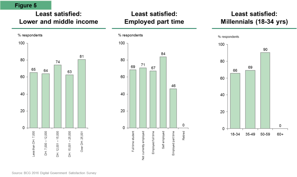 Young, low-income and part-time employed UAE respondents are the least satisfied customers of digital government services.